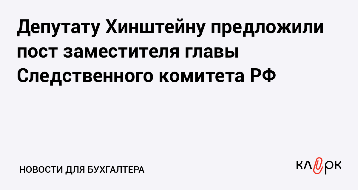 Представитель Следственного комитета при прокуратуре РФ Владимир Маркин сообщил журналистам, что и.о. главы Следственного комитета РФ Александр Бастрыкин предложил депутату Госдумы Александру Хинштейну должность своего заместителя, курирующего работу на Северном Кавказе.