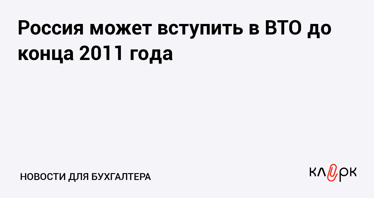 Еврокомиссар по торговле Карел Де Гюхт заявил, что Россия сможет завершить процесс вступления в ВТО до конца 2011 года. Уверенность в этом Карел Де Гюхт выразил после подписания с министром экономического развития РФ Эльвирой Набиуллиной меморандума о взаимопонимании по условиям присоединения России к ВТО, сообщает ИТАР-ТАСС.