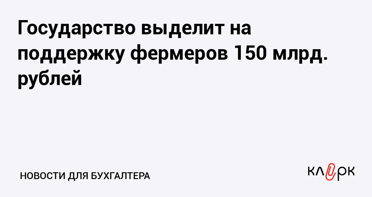 Государство выделит на поддержку фермеров 150 млрд. рублей