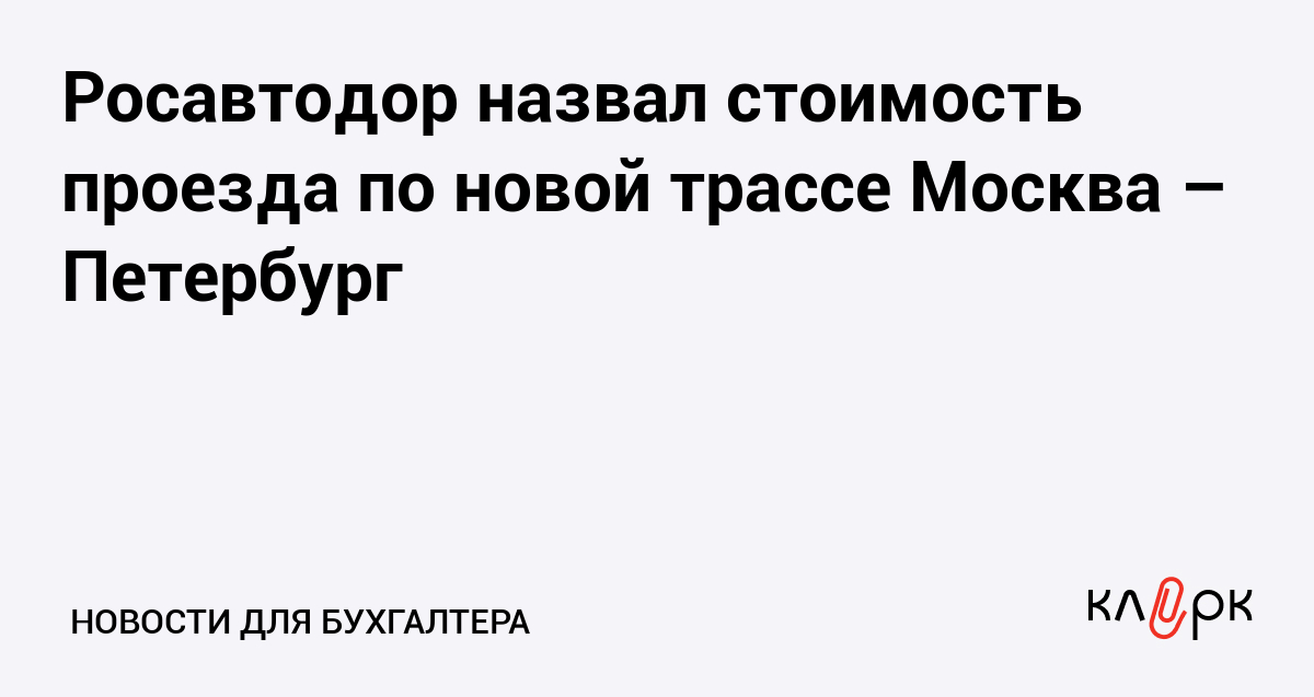 Росавтодор назвал стоимость проезда по новой трассе Москва – Петербург