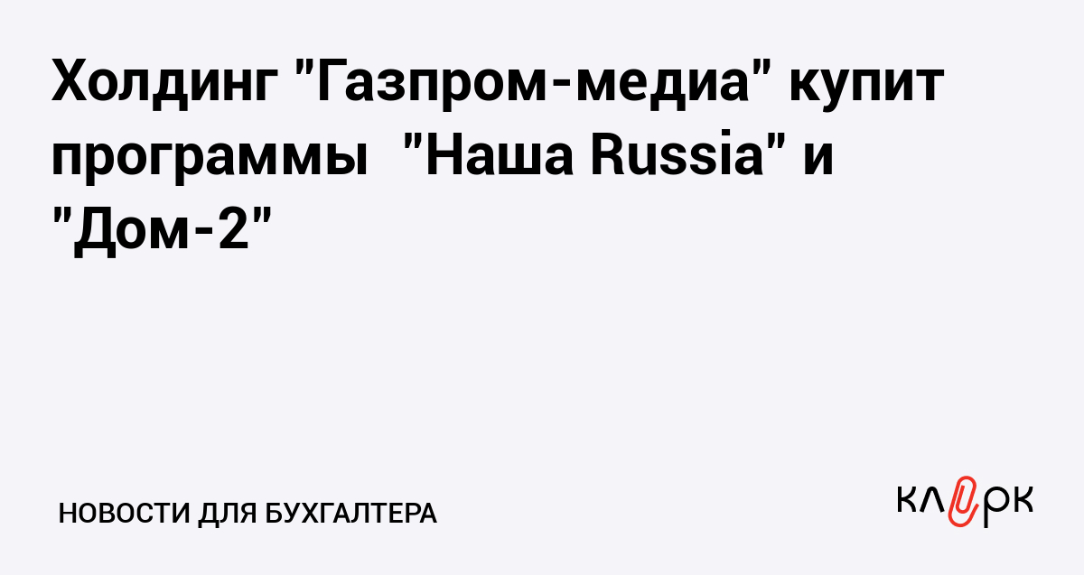 Холдинг "Газпром-медиа" купит программы "Наша Russia" и "Дом-2"