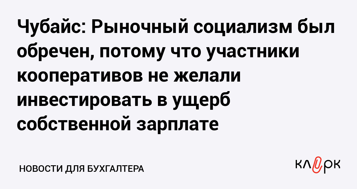 Чубайс: Рыночный социализм был обречен, потому что участники кооперативов не желали инвестировать в ущерб собственной зарплате