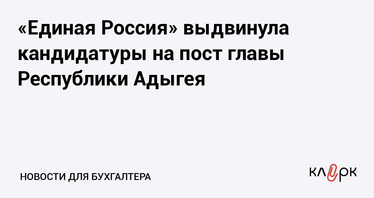 Руководство партии «Единая Россия» предложила накануне в ходе встречи с Президентом РФ Дмитрием Медведевым кандидатуры на пост главы Республики Адыгея.