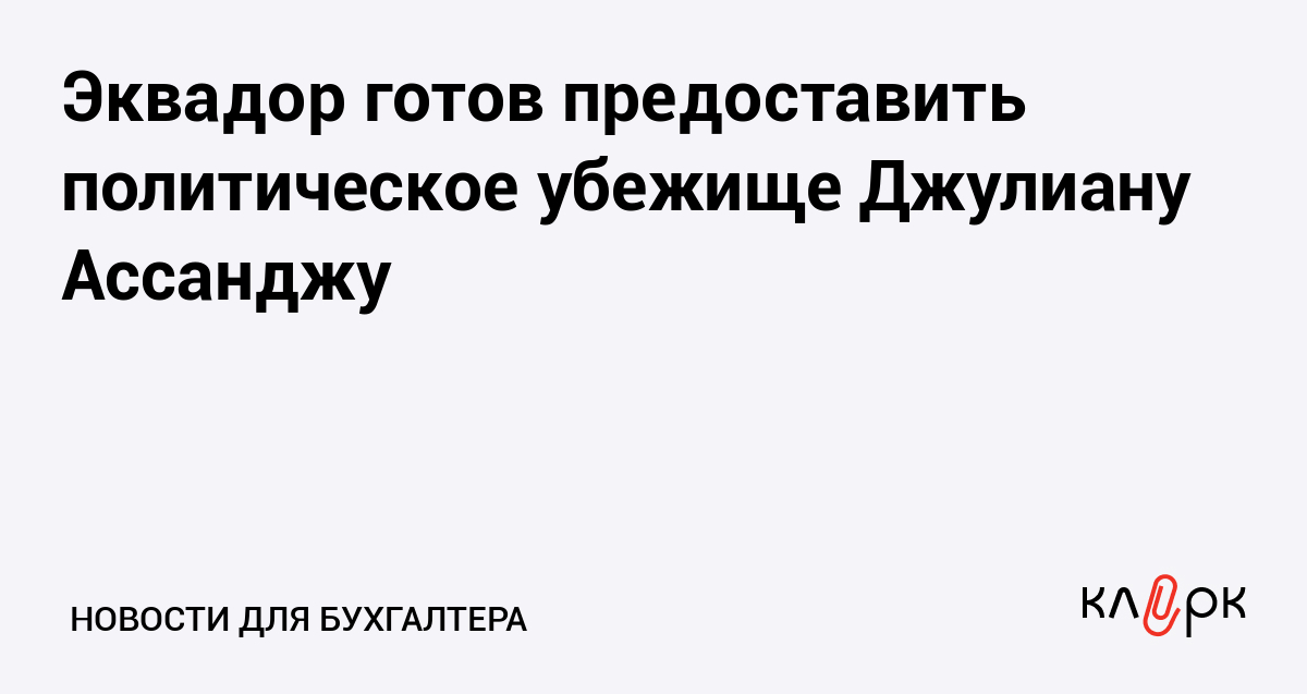 - Эквадор в ближайшее время решит вопрос о предоставлении политического убежища Джулиану Ассанджу – Клерк.Ру, 14.08.12
