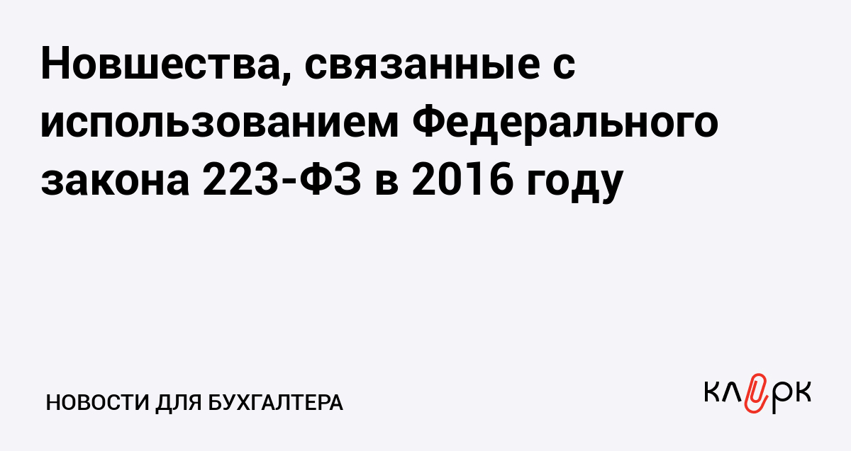 Новшества, связанные с использованием Федерального закона 223-ФЗ в 2016 году