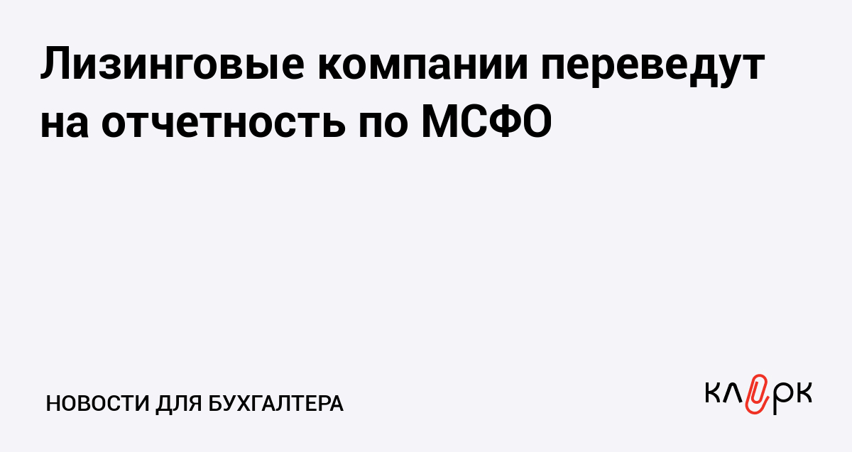 Лизинговые компании переведут на отчетность по МСФО