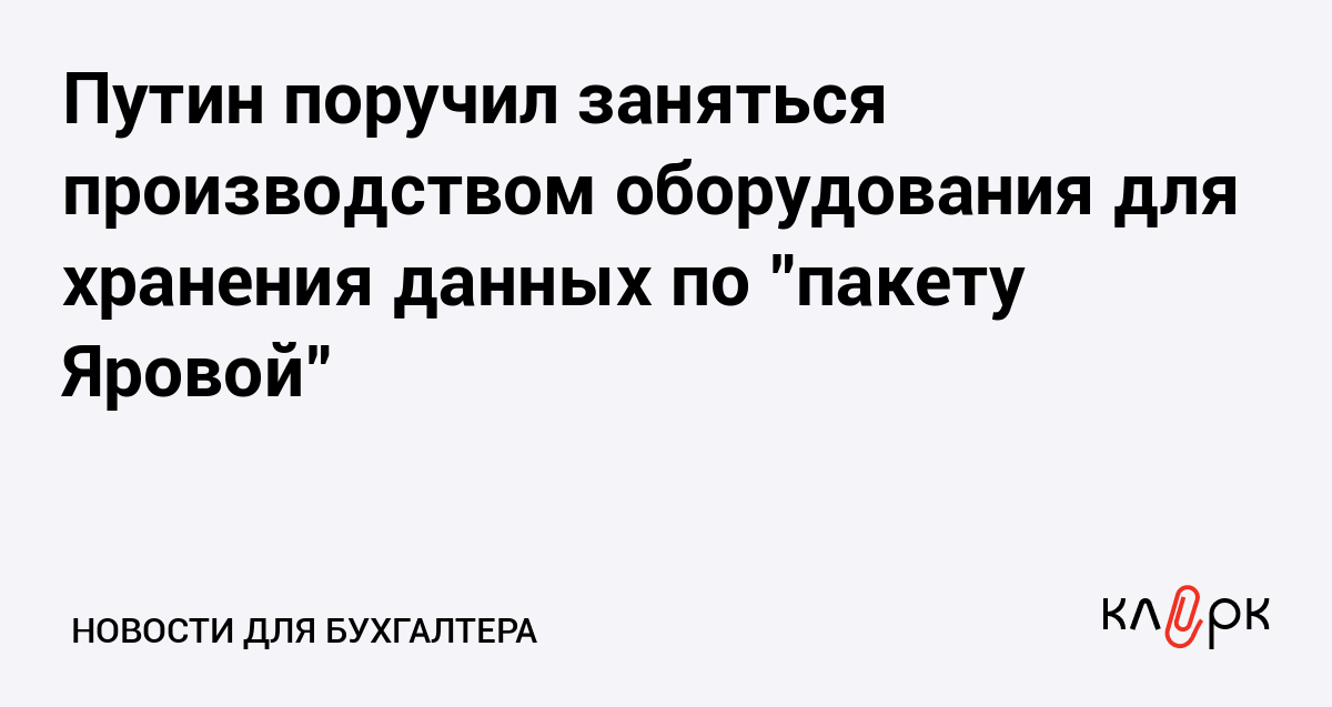 Президент РФ Владимир Путин поручил Минкомсвязи и Минпромторгу оперативно подготовить техническое задание для российских компаний по производству оборудования для хранения данных на территории РФ согласно требованиям "пакета Яровой", пишет ТАСС.