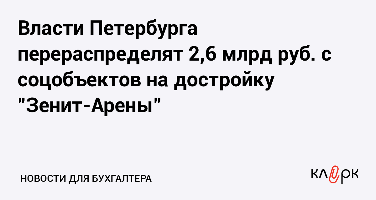 Комитет по строительству Санкт-Петербурга намерен перераспределить 2,6 млрд рублей с адресной инвестиционной программы 2016 года на достройку стадиона "Зенит-Арена" на Крестовском острове и прилегающей инфраструктуры. Деньги перераспределят с социальных объектов, сообщили вчера ТАСС в пресс-службе комитета.