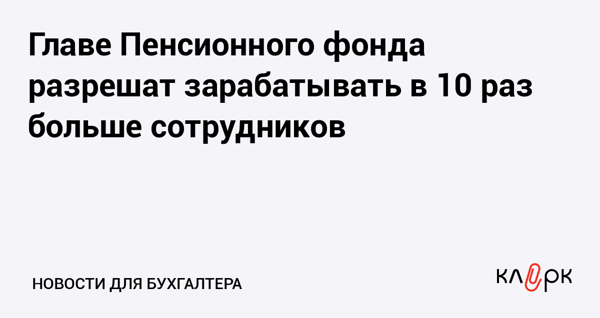 Главе Пенсионного фонда разрешат зарабатывать в 10 раз больше сотрудников