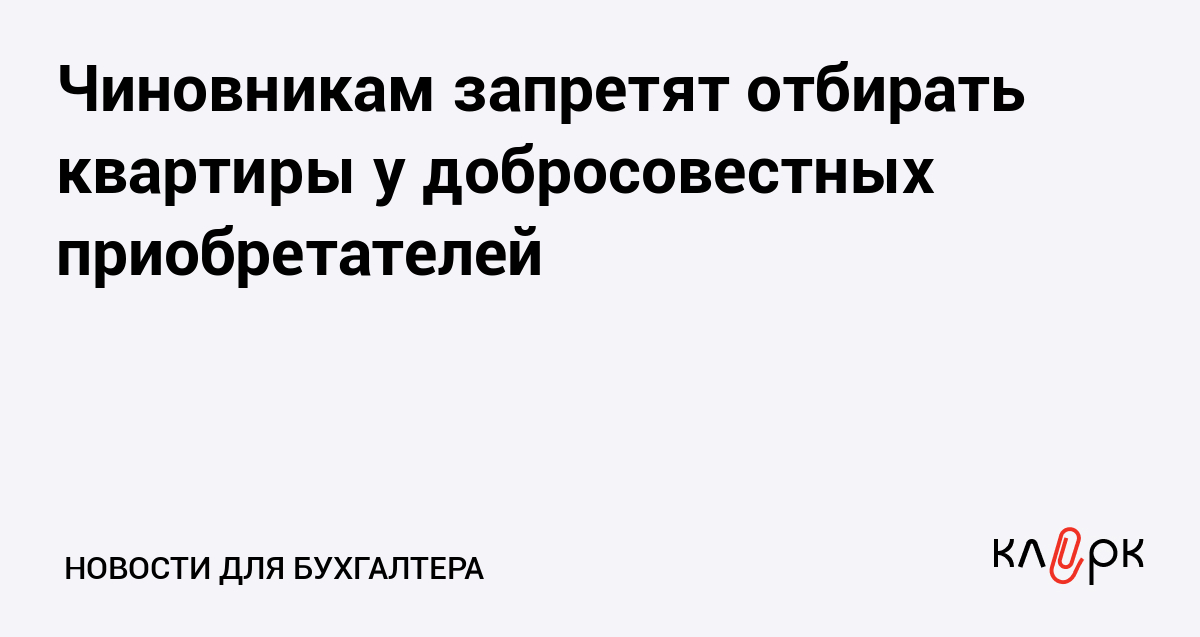 Чиновникам запретят отбирать квартиры у добросовестных приобретателей