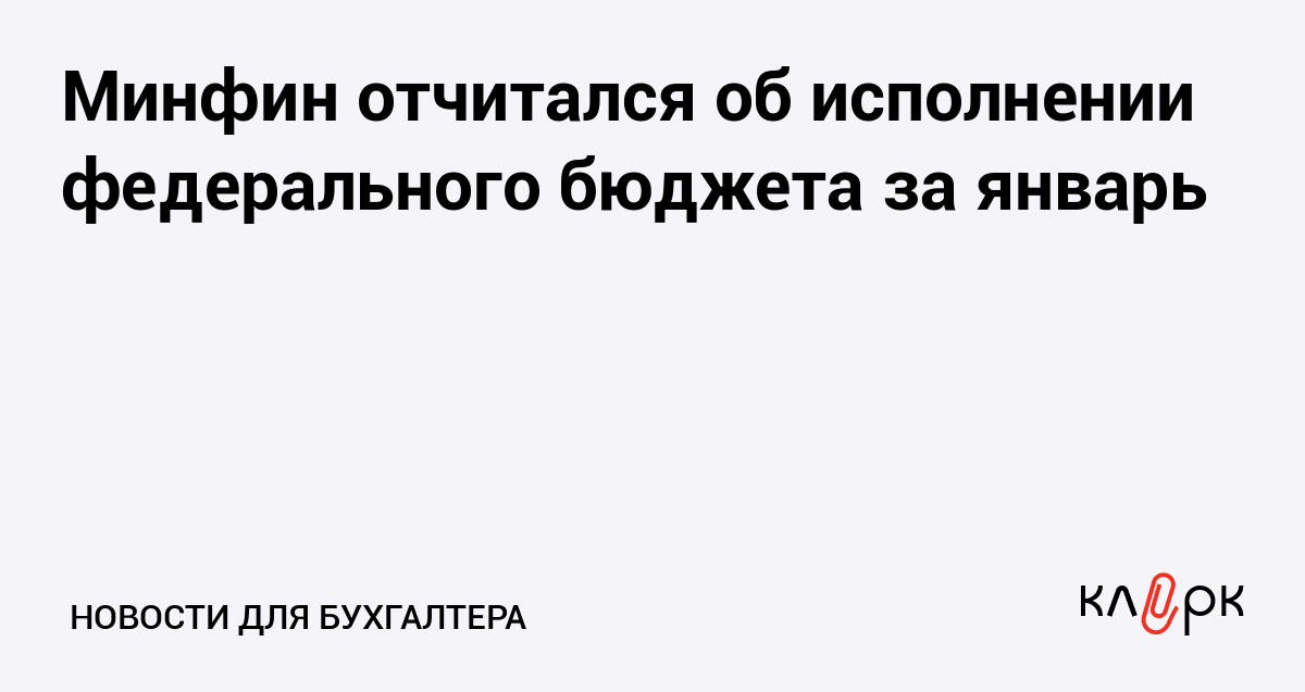 Минфин РФ опубликовал предварительную оценку исполнения федерального бюджета за январь 2017 года.