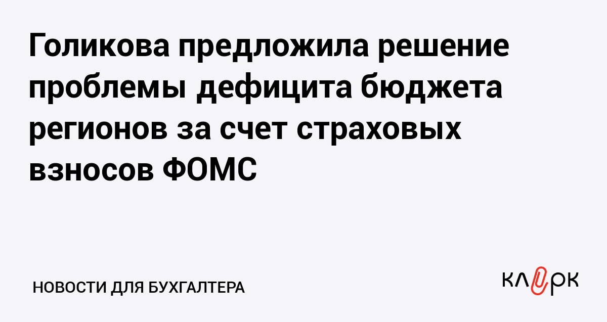 Голикова предложила решение проблемы дефицита бюджета регионов за счет страховых взносов ФОМС