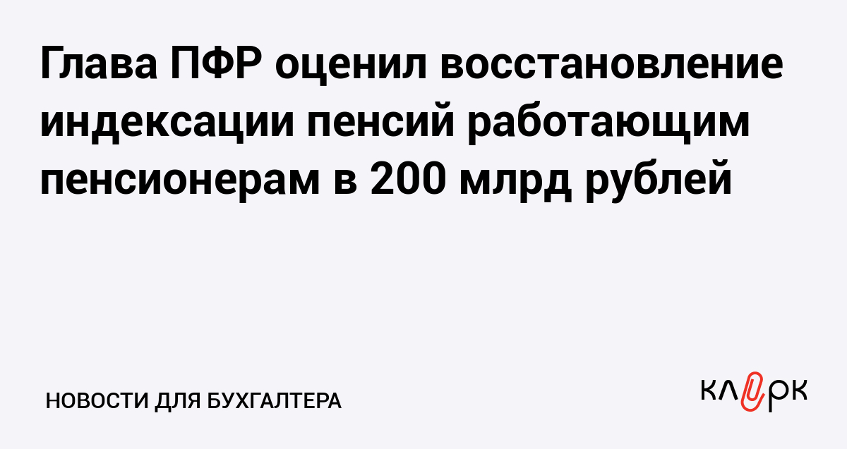 Глава ПФР оценил восстановление индексации пенсий работающим пенсионерам в 200 млрд рублей