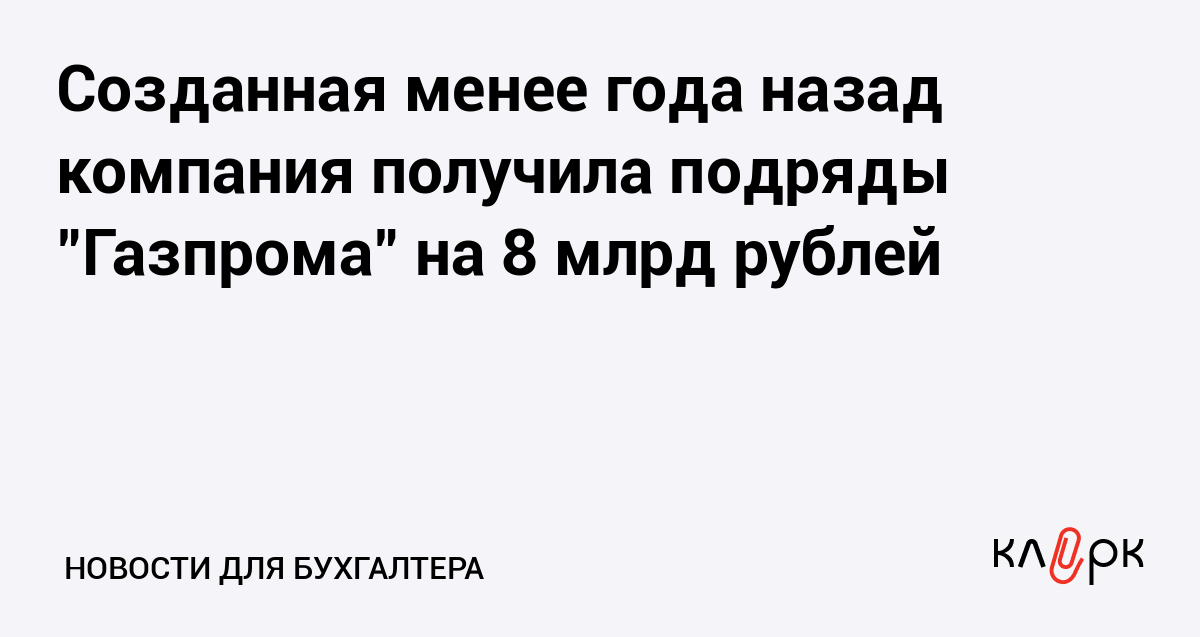 Созданная менее года назад компания получила подряды "Газпрома" на 8 млрд рублей