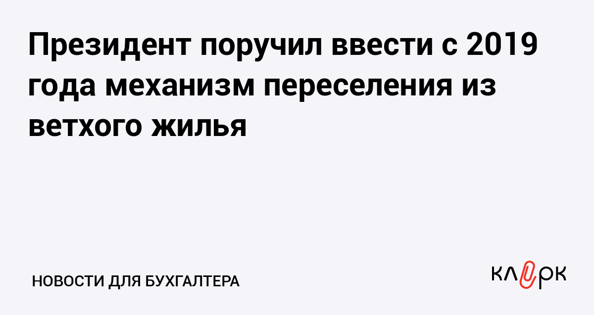 Президент поручил ввести с 2019 года механизм переселения из ветхого жилья