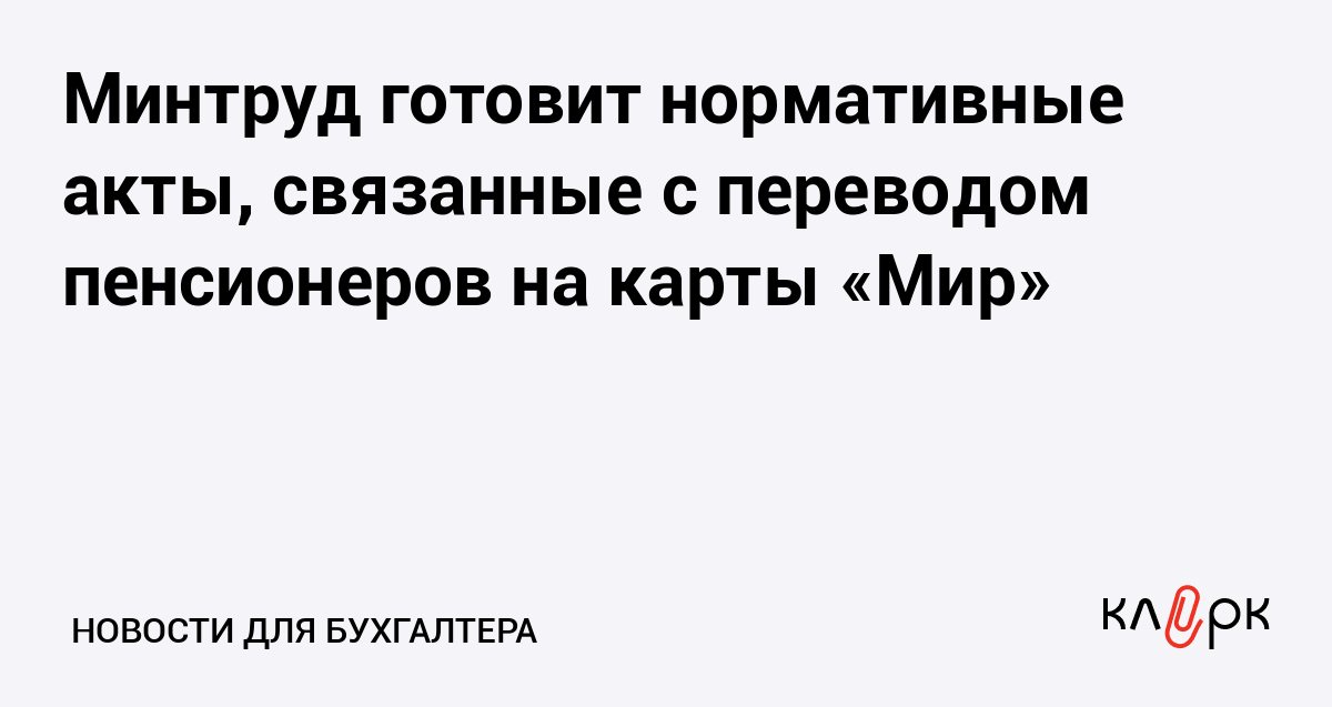 Минтруд готовит нормативные акты, связанные с переводом пенсионеров на карты «Мир»