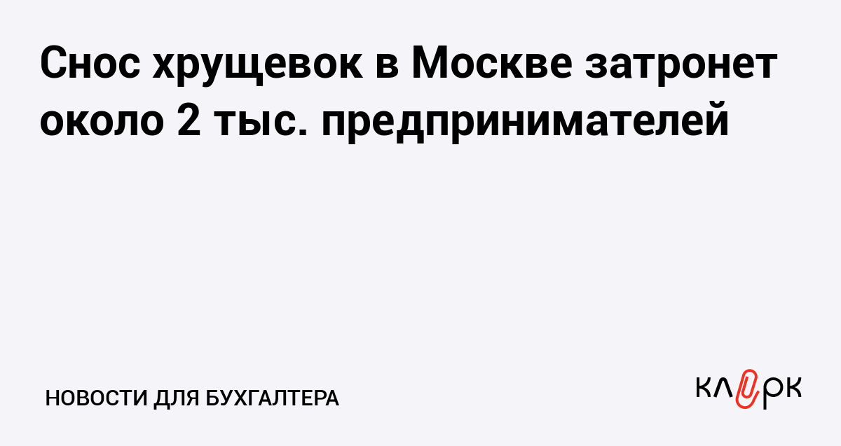 Снос хрущевок в Москве затронет около 2 тыс. предпринимателей