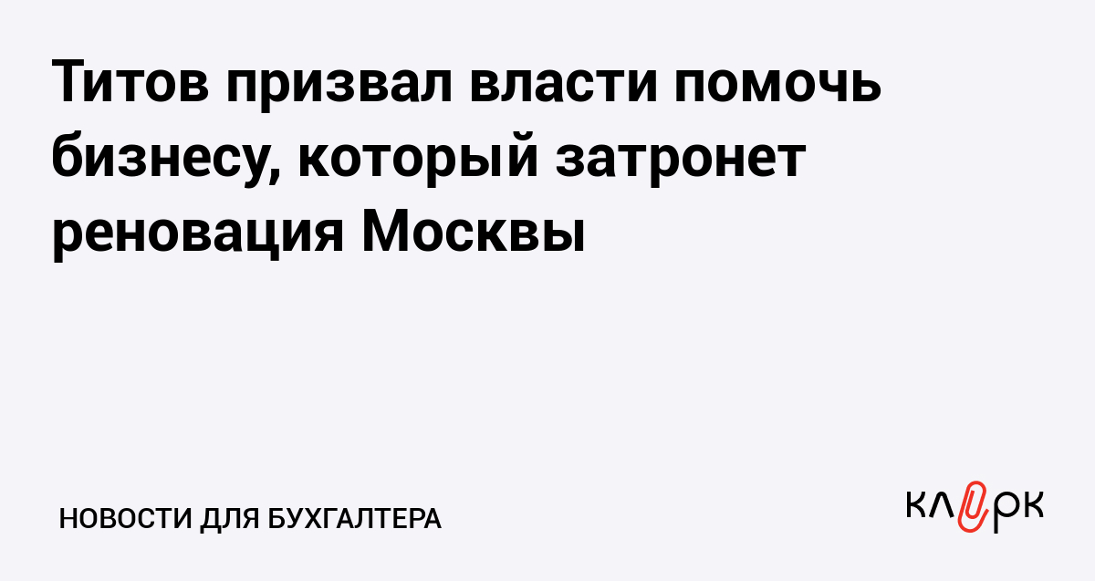 Титов призвал власти помочь бизнесу, который затронет реновация Москвы