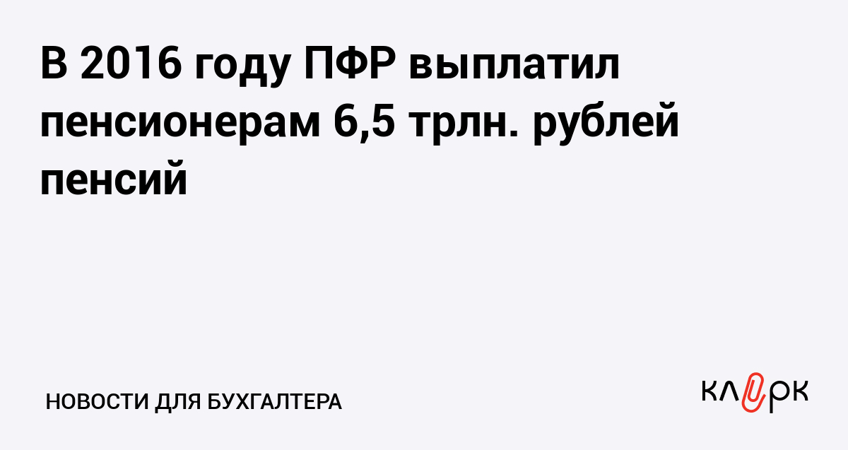 В 2016 году ПФР выплатил пенсионерам 6,5 трлн. рублей пенсий