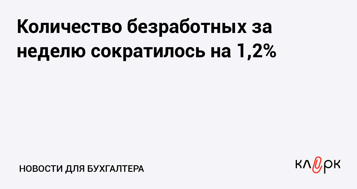 С 31 мая по 7 июня 2017 года численность безработных граждан, зарегистрированных в органах службы занятости, снизилась на 1,2 % и составила 838 371 человек, сообщили в пресс-службе Минтруда. Годом ранее этот показатель составлял 1 003 672 человека.