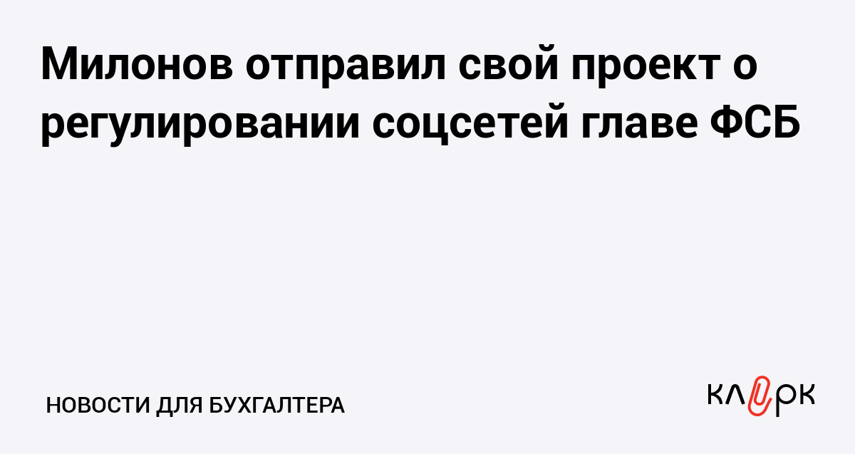 Милонов отправил свой проект о регулировании соцсетей главе ФСБ