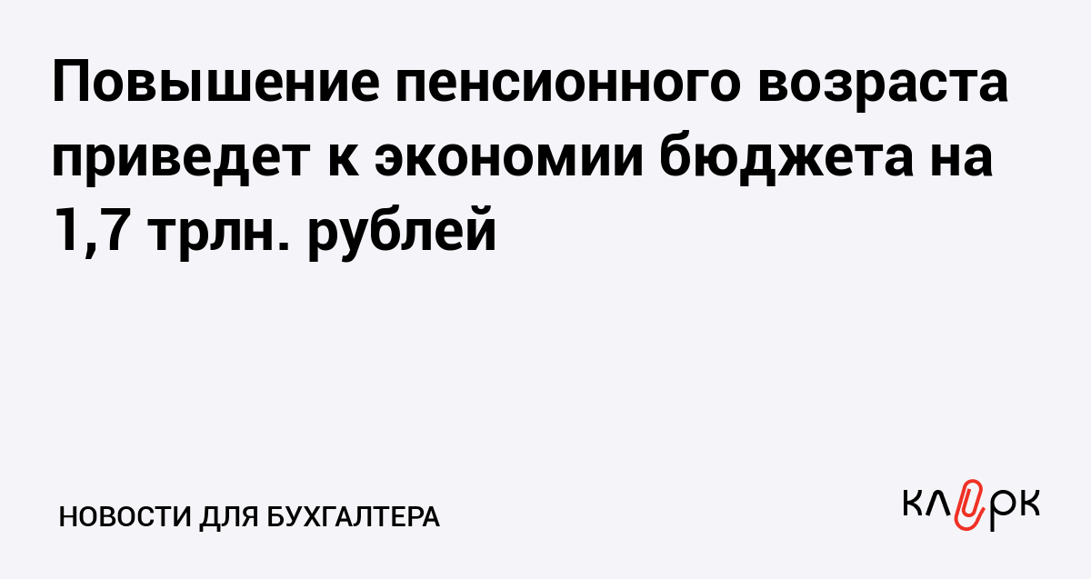 Повышение пенсионного возраста приведет к экономии бюджета на 1,7 трлн. рублей