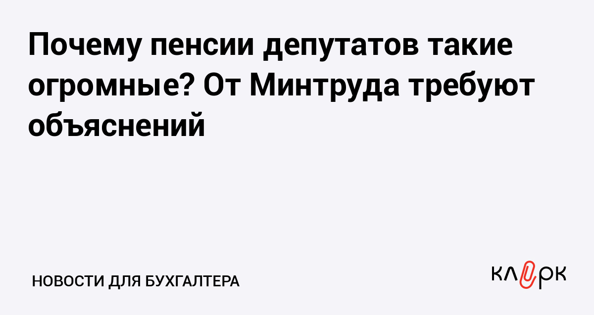 Почему пенсии депутатов такие огромные? От Минтруда требуют объяснений