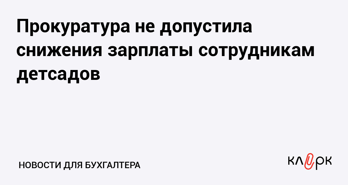 Прокуратура не допустила снижения зарплаты сотрудникам детсадов