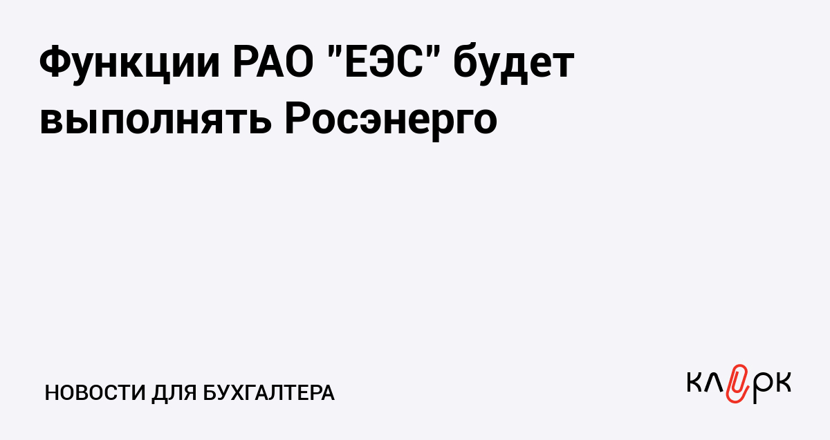 Функции РАО "ЕЭС" будет выполнять Росэнерго