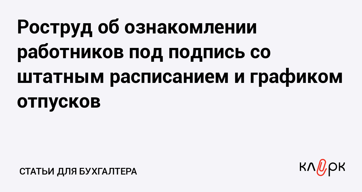 Роструд об ознакомлении работников под подпись со штатным расписанием и графиком отпусков