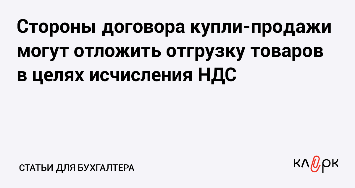 Стороны договора купли-продажи могут отложить отгрузку товаров в целях исчисления НДС