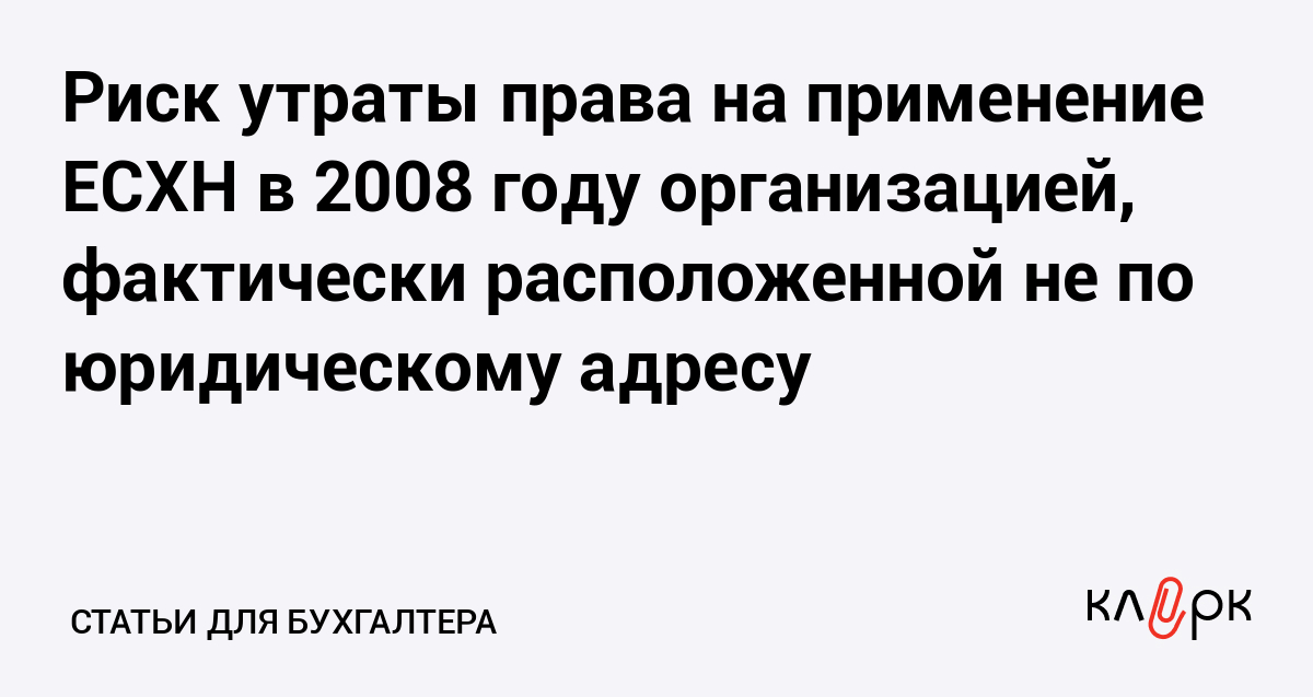 Риск утраты права на применение ЕСХН в 2008 году организацией, фактически расположенной не по юридическому адресу