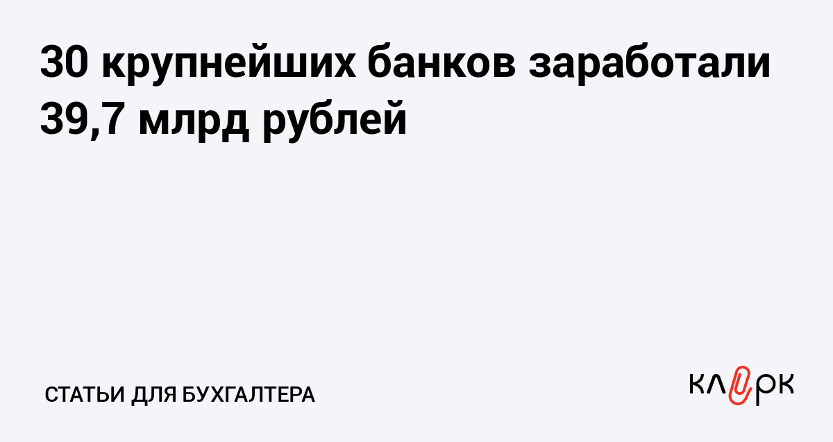 Прибыль 30-ти крупнейших банков России на 1 апреля 2009 г. с учетом финансовых результатов предыдущего года составила 949 млрд. 181 млн 109 тыс руб. Прибыль текущего года равнялась 39 млрд. 682 млн. 824 тыс. руб. Об этом свидетельствуют данные Банка России, опубликованные сегодня, 21 мая.