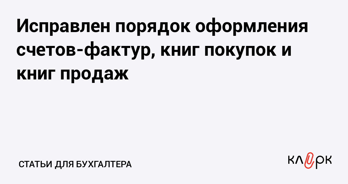 Исправлен порядок оформления счетов-фактур, книг покупок и книг продаж