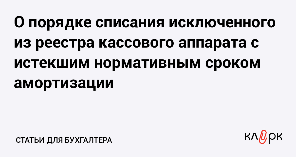 О порядке списания исключенного из реестра кассового аппарата с истекшим нормативным сроком амортизации