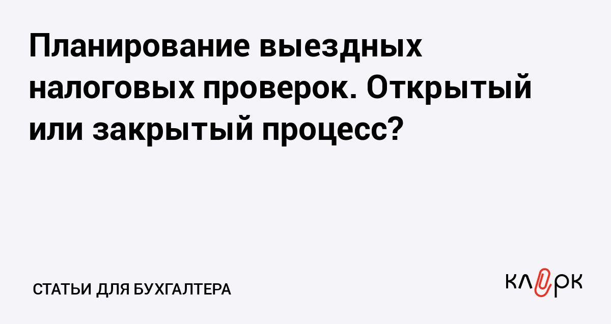 Планирование выездных налоговых проверок. Открытый или закрытый процесс?