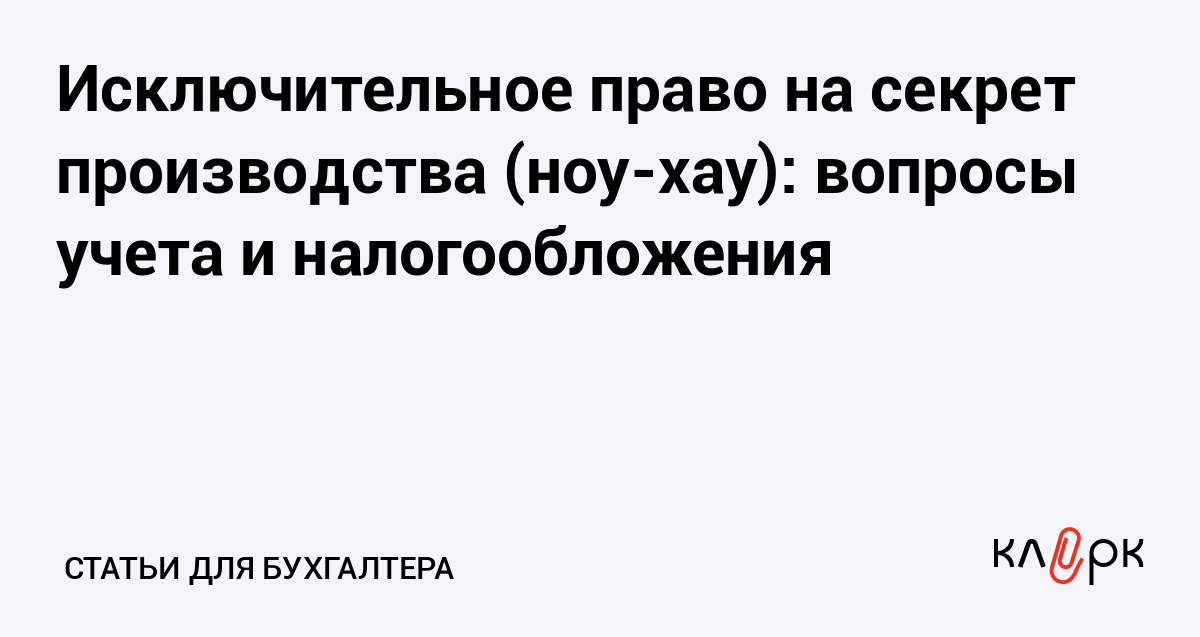 Исключительное право на секрет производства (ноу-хау): вопросы учета и налогообложения