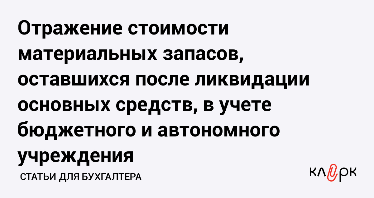Отражение стоимости материальных запасов, оставшихся после ликвидации основных средств, в учете бюджетного и автономного учреждения