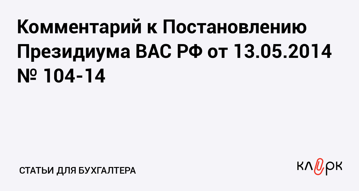 Комментарий к Постановлению Президиума ВАС РФ от 13.05.2014 № 104-14