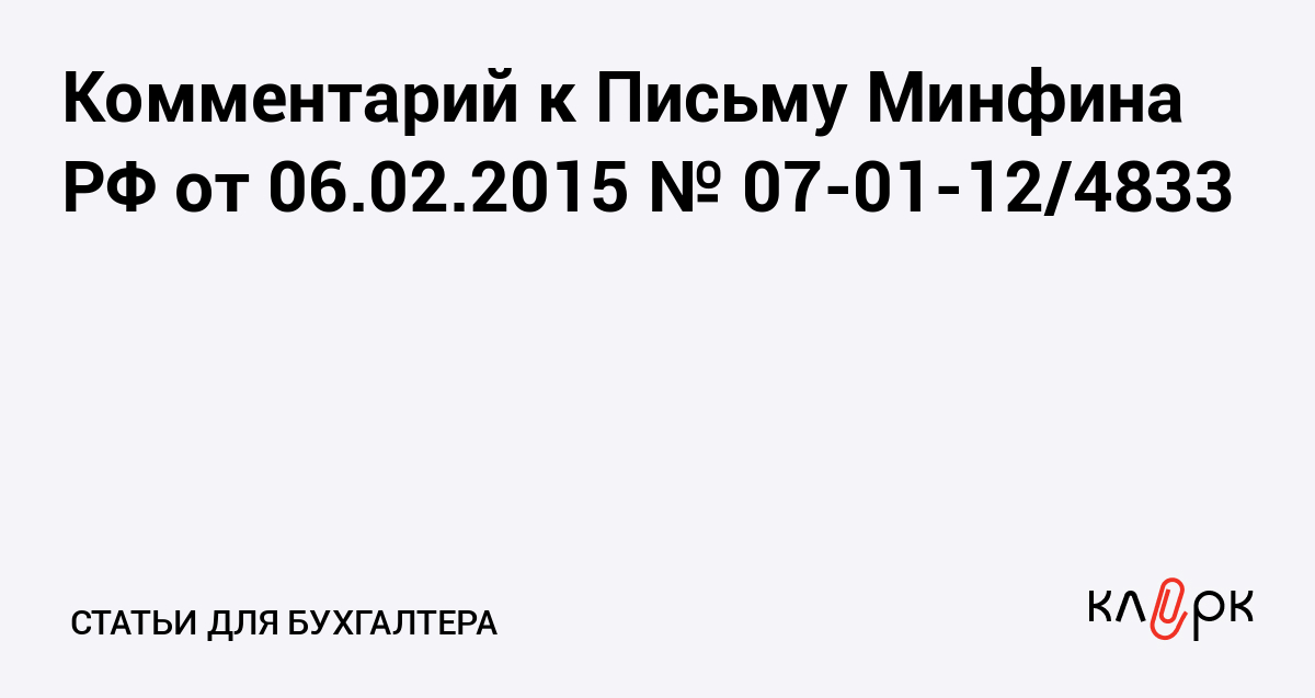 Комментарий к Письму Минфина РФ от 06.02.2015 № 07-01-12/4833