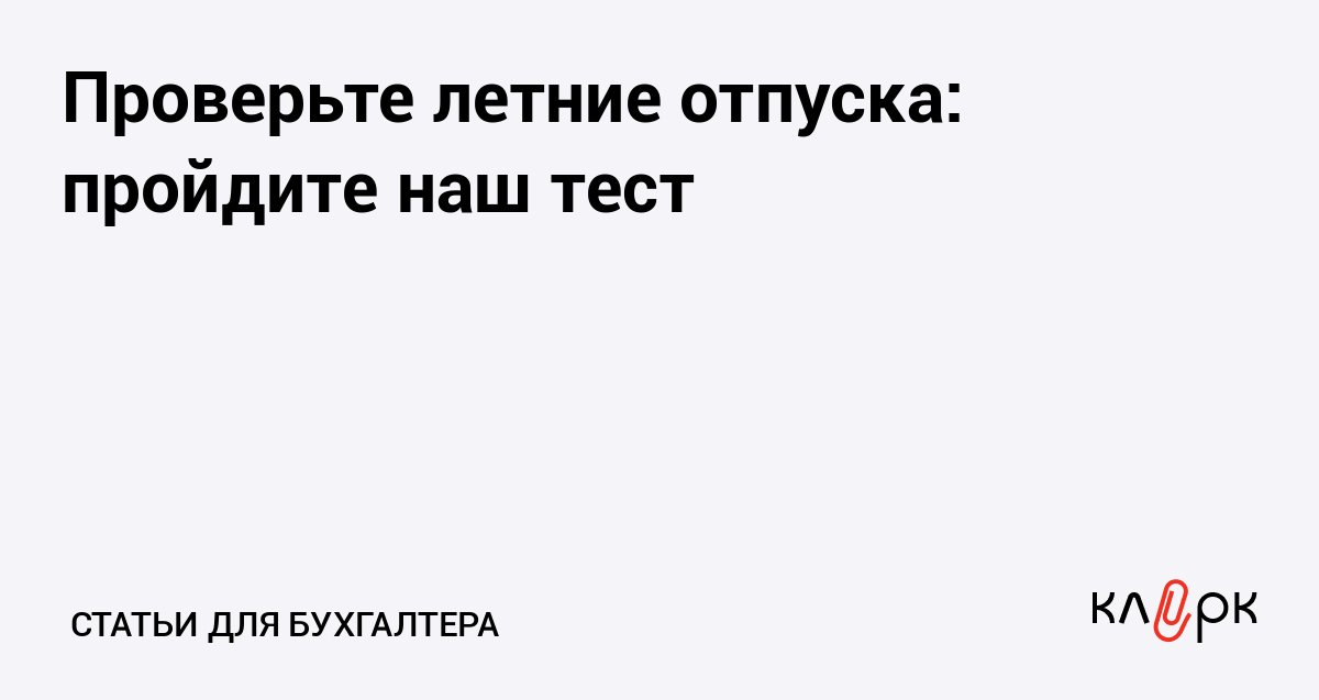 Лето на исходе, а оформление отпусков все равно еще может беспокоить бухгалтеров и кадровиков. Вот наш нескучный тест. Все мы знакомы с анекдотами про Вовочку и про его учительницу Марью Ивановну. Вовочка подрос, возмужал, открыл свою частную школу и нанял Марью Ивановну своим замом. А вот стал ли он умнее, это мы и узнаем.
