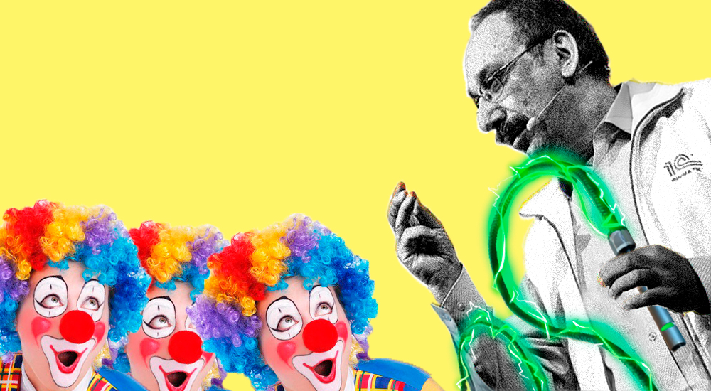 Под конец выступления лектор сказал, что уже пора уже вспомнить, что мы находимся в цирке, и одел клоунский нос.