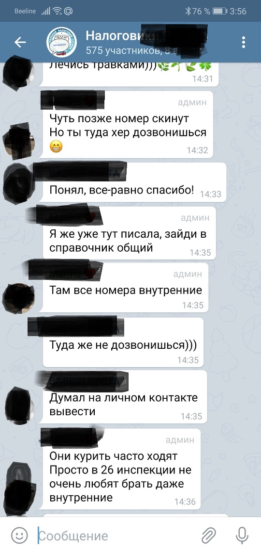 Кто-то спрашивает: нельзя сделать чат закрытым? Оказывается, группу атаковали налогоплательщики с вопросами. Но инспекторы не отвечают, и чатик просят не засорять. Админ все удалил, ибо не справочное бюро.