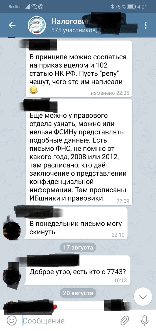 Выясняется, что чат налоговиков читают посторонние.