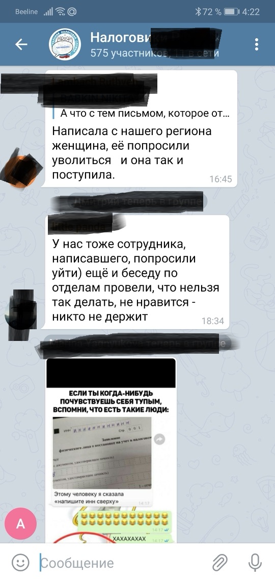 Вскоре ФНС может запретить своим работникам общаться в интернете. Мы боимся, что канут в лету чатики налоговиков, которые мы отыскали в Телеграмме.