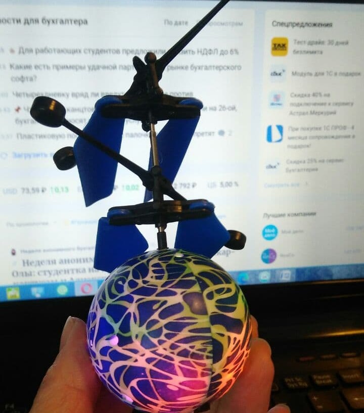 Когда я сообразила что к чему, оказалось, что внук запускал вот такой шарик летать по комнате и он залетел мне прямо в голову.
