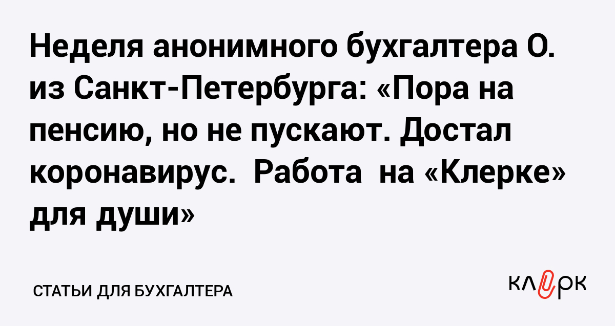 Неделя анонимного бухгалтера О. из Санкт-Петербурга: «Пора на пенсию, но не пускают. Достал коронавирус. Работа на «Клерке» для души»