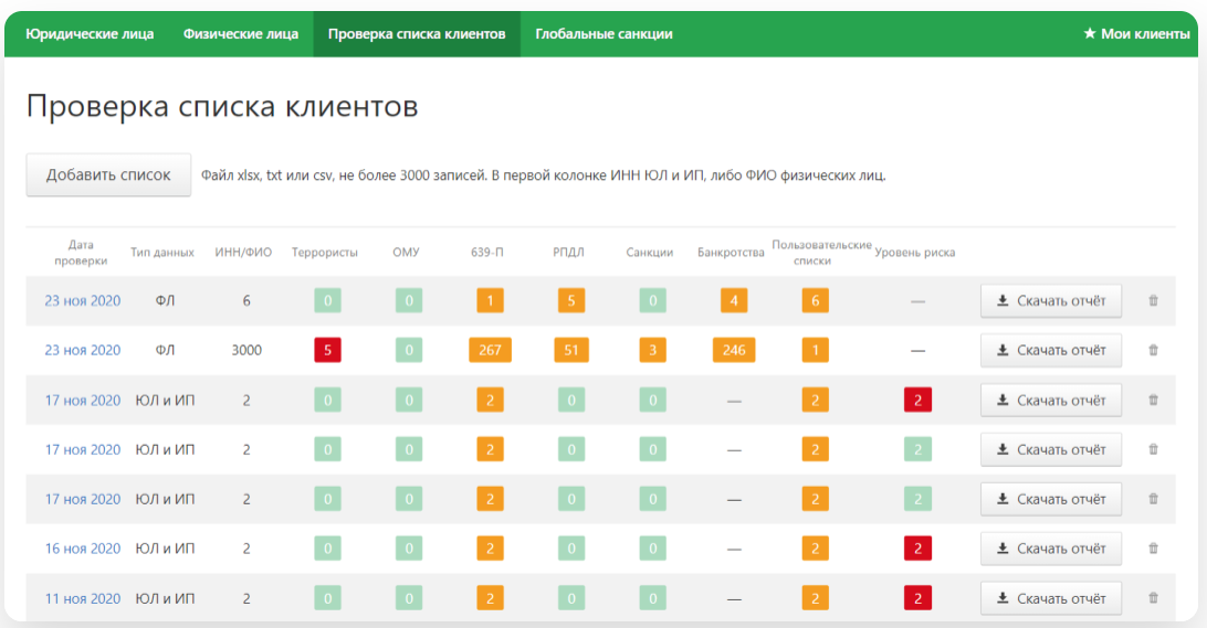 как хранятся результаты проверок — обновляемые досье контрагентов с историей и результатами проверок.