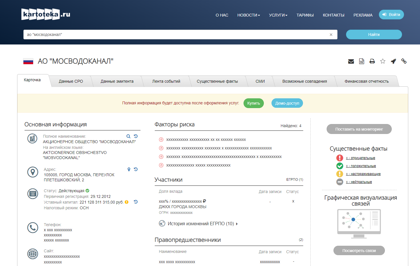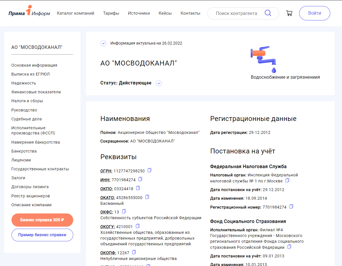 Тариф: заполнить карточку своей организации можно от 1 500 руб. в год.