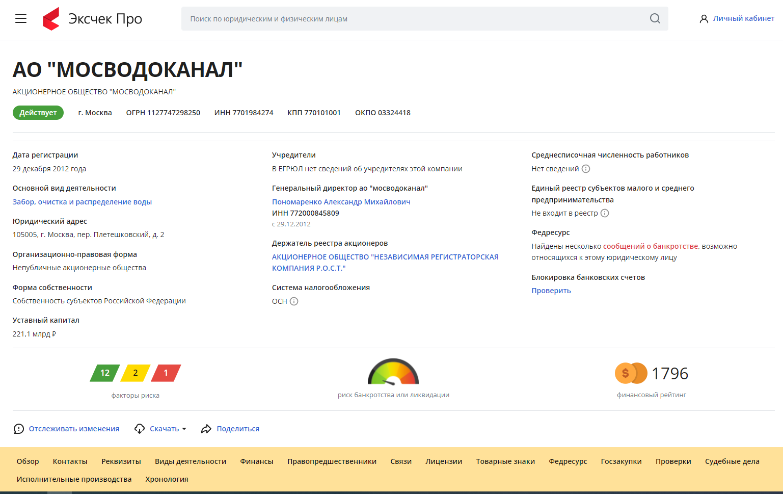 наличие индикаторов для оценки рисков — считает факторы риска, риск банкротства или ликвидации, финансовый рейтинг;